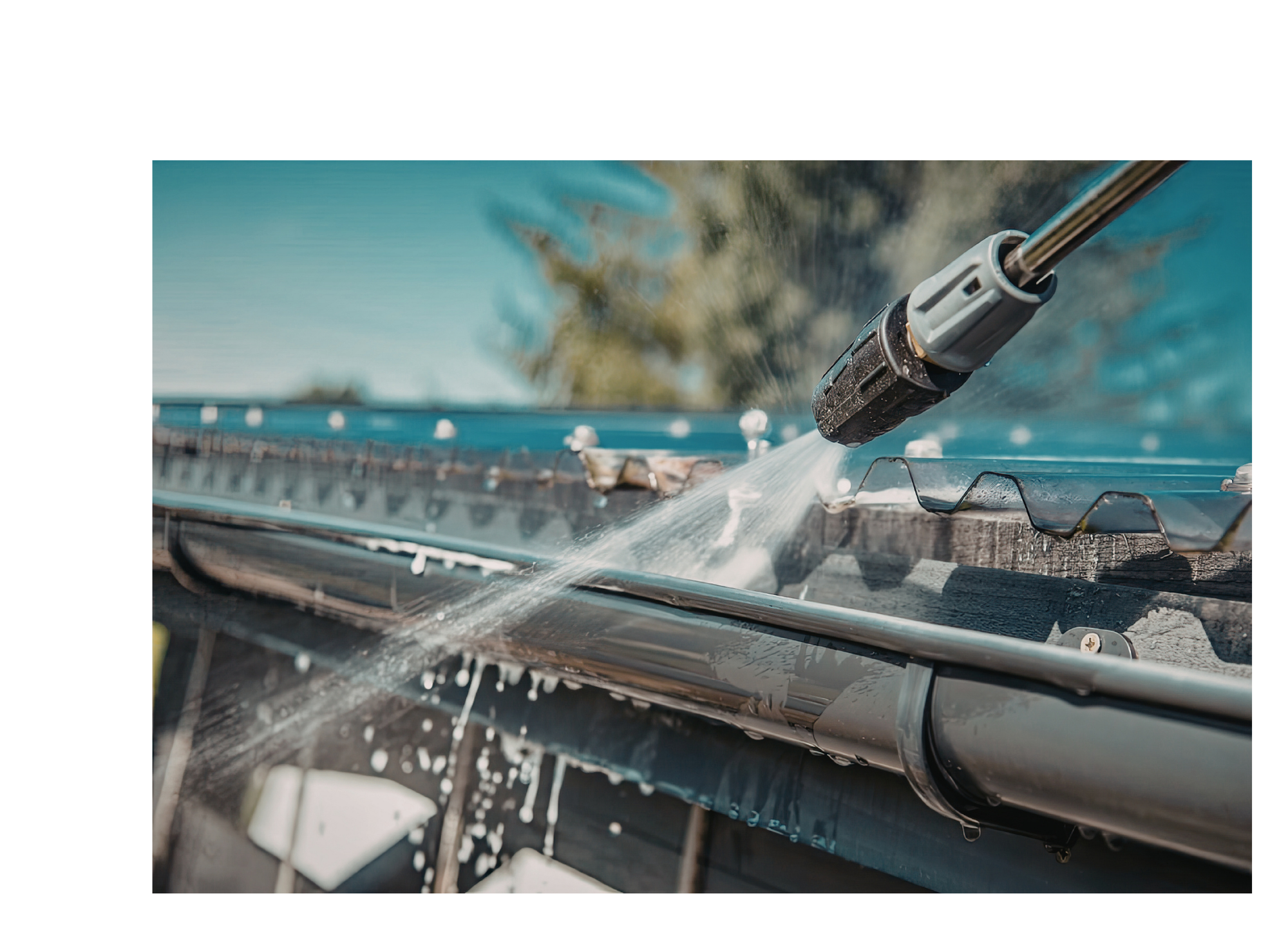 We remove all debris from the Gutters and then inspect spouts for any clogs that may prevent water flow.